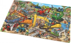 Táto veľká obrázková knižka zavedie malých čitateľov do rušného sveta stavby, kde pracujú rôzne stavebné stroje – od červeného bagra s dvojitými pneumatikami cez zelený kolesový nakladač až po žlté pásové rýpadlo. Farebné a prehľadné scény podnecujú zvedavosť a rozvoj jemnej motoriky a logického myslenia.