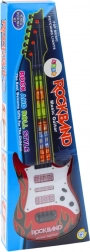 Detská elektrická gitara so svetlami a melódiami v červenom prevedení je ideálnou voľbou pre malých hudobných nadšencov. Táto gitara nielen priťahuje pozornosť svojím atraktívnym dizajnom, ale aj farebnými svetelnými efektmi, ktoré dodávajú každému vystúpeniu jedinečnú atmosféru.