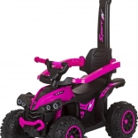 Štýlové ružové odrážadlo štvorkolka od značky CHIPOLINO kombinuje bezpečie, pohodlie a zábavu pre najmenších. Vďaka vodiacej tyči s pohodlnou rukoväťou a odnímateľnej strieške môžu deti jazdiť s pomocou rodičov aj úplne samy. O rozvoj motoriky a koordinácie sa postarajú stabilné kolesá a melódie pre radosť z jazdy.