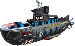 Táto veľká vojenská ponorka poteší všetky deti, ktoré fascinujú vojaci, námorné misie a život pod hladinou. Po stlačení horného tlačidla sa spustia realistické zvuky streľby, ktoré umocnia atmosféru hry. Vďaka integrovaným kolieskam sa ponorka ľahko pohybuje po podlahe a je pripravená na akciu v detskej izbe.