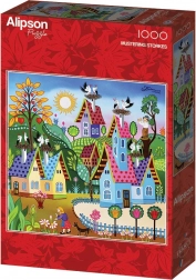 Užite si relax s krásne ilustrovaným štvorcovým puzzle s motívom zletu bocianov. Obsahuje 1000 dielikov a po poskladaní má rozmer cca 63,5 × 63,5 cm – ideálne pre milovníkov prírody a náročnejšie skladačky.