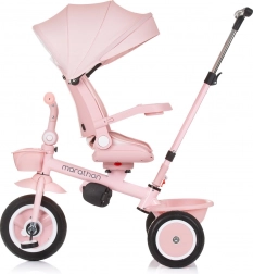 Trojkolka so strieškou Marathon 2v1 Flamingo je navrhnutá tak, aby poskytovala maximálne pohodlie a bezpečnosť ako pre deti, tak pre rodičov vďaka svojim variabilným možnostiam. Najprv môžu rodičia trojkolku riadiť pomocou pohodlnej rukoväti potiahnutej ekokožou, a keď dieťa dostatočne vyrastie, môže jazdiť samostatne.