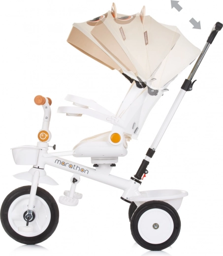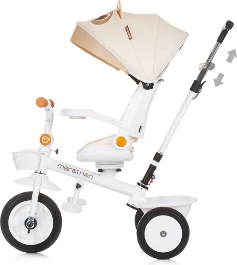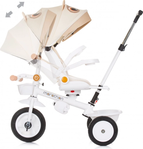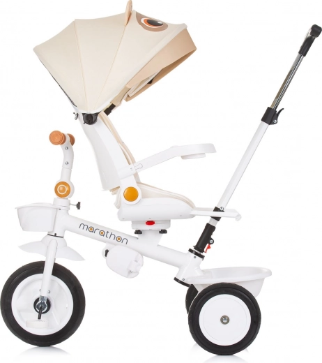 Otočná rukoväť pre rodičov a skladacie operadlo pre kompaktné uloženie robia z trojkolky ideálneho sprievodcu na vašich výletoch.