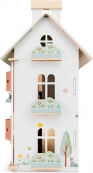 Drevený domček pre bábiky s nábytkom ponúka deťom možnosť ponoriť sa do sveta fantázie. Tento krásny domček pozýva všetkých malých objaviteľov do čarovného sveta, kde každá miestnosť v sebe ukrýva príbeh. Tapety a milé ilustrácie dodávajú atmosféru útulnosti.