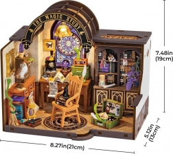 Vyberte sa do sveta čar a mágie s týmto miniatúrnym modelom čarodejníckej pracovňe v mierke 1:18. Každý detail je starostlivo vytvorený, od kníh a papierových zvitkov až po krištáľovú guľu a tajomný kufor. Útulné LED osvetlenie dodáva priestoru magický nádych.