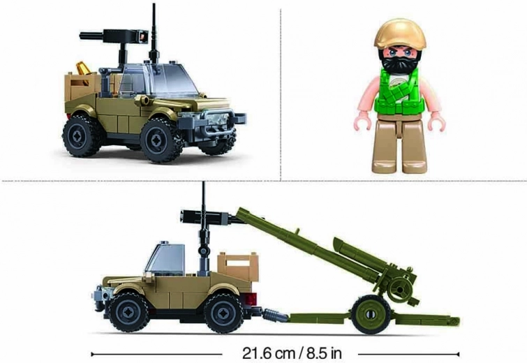 Umožnite deťom prežiť vzrušujúce dobrodružstvo s touto unikátnou stavebnicou Sluban Army. Vytvorte vlastné armádne scenáre s mini vozidlom a húfnicou IFR D30S. Kreatívny a učebný zážitok pre všetkých nadšencov do vojny a vojenských vozidiel. Stavebnica je vyrobená z kvalitného ABS plastu, ktorý je odolný a bezpečný. Ponúka 138 dielikov a 1 inovatívnu figúrku s pohyblivými časťami tiel. Táto sada je kompatibilná s ďalšími významnými stavebnicami.