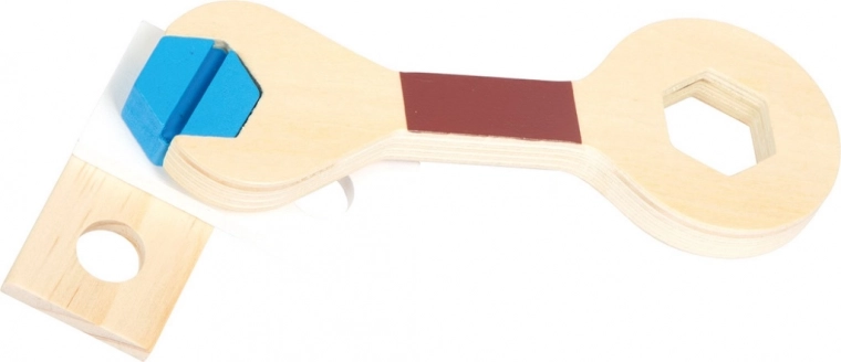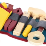 Drevené kladivo, skrutkovač, kľúč a kliešte sú navrhnuté pre malé detské ruky. Podporujú prirodzenú zručnosť a napodobňovanie reálnej práce.