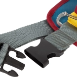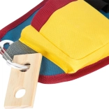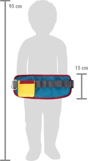Textilný opasok s robustnou prackou a D-krúžkom sa ľahko prispôsobí postave dieťaťa. Pútka a vrecko udržia nástroje bezpečne na mieste aj pri pohybe.