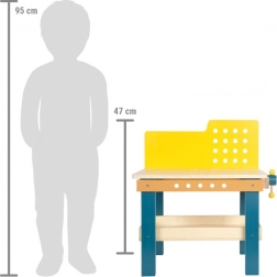 Objavte dokonalé detské pracovisko pre malých majstrov. Tento stabilný drevený ponk SMALL FOOT Workshop ponúka realistické prvky ako integrovaný zverák, pracovnú dosku s otvormi a žltú pegboard dosku na upevnenie dielov. Deti môžu zatĺkať, rezať aj skrutkovať a pritom rozvíjať manuálnu zručnosť a technické myslenie.