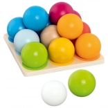 Sada obsahuje štrnásť farebných guličiek vyrobených z masívneho dreva, ktoré umožňujú rôzne herné možnosti.