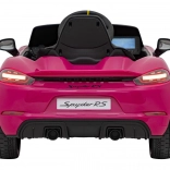 Štýlové detské elektrické autíčko licencované Porsche 718 Spyder RS v ružovej farbe ponúka realistický zážitok z jazdy vďaka dvojici motorov 2x45 W, batérii 12V7Ah a mäkkým kolesám EVA. Diaľkové ovládanie 2.4 GHz s bezpečnostným tlačidlom Stop, LED svetlá vpredu aj vzadu, eko-kožené sedadlo s pásmi a multimediálny panel MP4 s Bluetooth, USB, MP3 a FM rádiom zaručujú pohodlie, bezpečie aj zábavu.