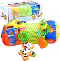 Zostava obsahuje:Valec je pokrytý materiálom, ktorý je ľahko udržiavateľný v čistote. Pútavé farby priťahujú pozornosť dieťaťa a napomáhajú rozlišovaniu tvarov a farieb. Rôzne hrkálky pozitívne vplývajú na rozvoj sluchu a koordináciu rúk - môžete ich nechať dieťaťu na voľnú hru alebo pripnúť na mäkký valec. Skvelý darček pre nového člena rodiny, efektne zabalený.