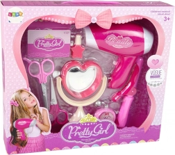 Súčasťou je srdiečkové zrkadielko s podstavcom, imitácia kulmy, nožnice a kozmetické rekvizity, vďaka ktorým môžu deti vymýšľať nové účesy aj „beauty“ rituály. Balenie je ideálne ako darček pre malé stylistky od 3 rokov.