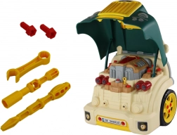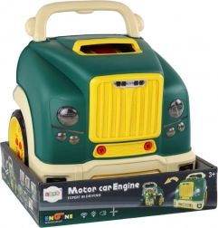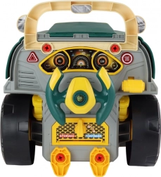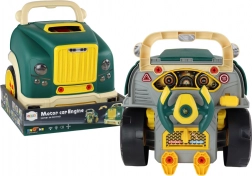Táto detská montážna dielňa v podobe zeleného kamióna spája hru a učenie v jednom. Deti môžu odskrutkovať kolesá, otvoriť kapotu a skúmať motor, pričom si precvičia koordináciu rúk a trpezlivosť. Interaktívna palubná doska s volantom, klaksónom, tlačidlom štart/stop, výstražným tlačidlom a prepínačom „prevodov“ prináša realistické zážitky z riadenia.