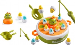 Táto drevená magnetická hra je skvelou voľbou pre prvé spoločenské hry. Deti pomocou prútov s magnetmi lovia farebné dinosauří dieliky, trénujú presnosť pohybov a sústredenie a pritom sa výborne bavia.