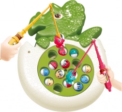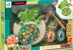 Zábavná detská hra v tvare dinosaura, v ktorej sa rybičky v „jazierku“ otáčajú a vystupujú na hladinu. Deti ich chytajú do sieťky alebo na prút a trénujú postreh, jemnú motoriku a koordináciu. Hra ponúka svetelné efekty a zvuky pre ešte väčšiu zábavu.