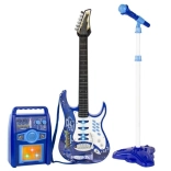 Táto modrá detská elektrická gitara je stvorená pre malé rockové hviezdy! Vyrobená z kvalitného plastu, ponúka realistický dizajn s kovovými strunami a jednoduchú manipuláciu vďaka priloženému popruhu.