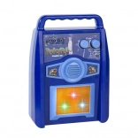 Stojan na mikrofón je ľahko nastaviteľný od 65 cm do 109 cm a umožňuje použitie mikrofónu pre spev, ktorý je prenášaný do zabudovaného reproduktora.