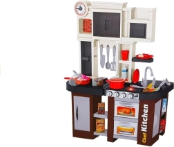 Kuchynka s reálnymi prvkami vrátane sporáka, rúry a umývadla so skutočným kohútikom, čo poskytuje deťom autentický herný zážitok.