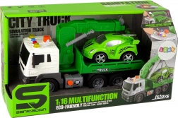 Okrem odťahového auta obsahuje sada športové auto, ktoré je pripravené na opravu vo vašej detskej dielni. Rozmery odťahového auta sú 38 cm x 13 cm x 16 cm, športové autíčko meria 18 cm x 8 cm x 7 cm. Hračka je napájaná tromi batériami AG13 (súčasťou balenia) a je určená pre deti staršie ako 3 roky. Spĺňa normy CE a EN 71.