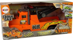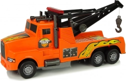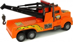 Rozbehnite záchrannú akciu s oranžovým plastovým odťahovým autom so štýlovými plameňmi. Otočný žeriav, výsuvné lano a ručný navijak umožnia ľahko „odtiahnuť“ iné hračky na bezpečné miesto. Zotrvačníkový pohon na spätný ťah dodá autu rýchlosť aj porciu zábavy.
