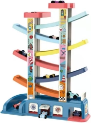 Zábavná sklzová dráha pre autíčka so 6 farebnými autíčkami prináša deťom radosť z pohybu aj učenia. Pastelové farby a stabilná konštrukcia lákajú k hre, zatiaľ čo zaoblené hrany zabezpečujú bezpečnosť. Podporuje rozvoj jemnej motoriky a koordinácie. Spĺňa CE a normu EN71, vhodné od 3 rokov.