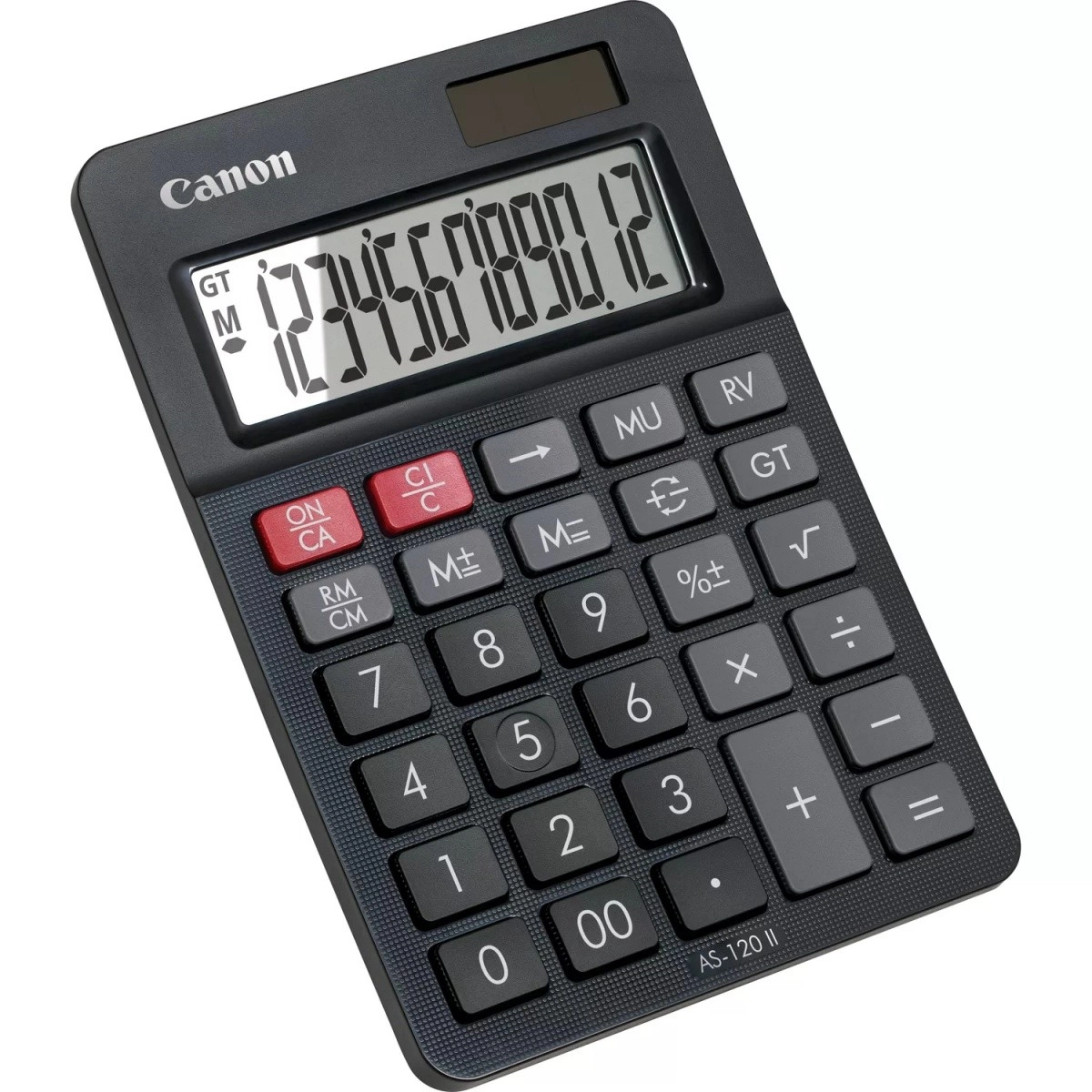 Kalkulačka Canon AS-120 II je kompaktná a praktická 12-miestna stolová kalkulačka s vertikálne nakloneným displejom, ktorá je ideálna na kancelárske použitie. Ponúka funkcie marže, storna a celkovej sumy, ktoré uľahčujú vykonávanie zložitých výpočtov. Táto kalkulačka je tiež ekologická – niektoré jej časti sú vyrobené z recyklovaných materiálov spoločnosti Canon.