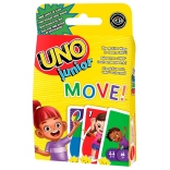 UNO Junior Move je dynamická verzia obľúbenej hry UNO navrhnutá pre najmenších hráčov. Spája pohyb, smiech a rýchlu kartovú zábavu – pri vykladaní kariet deti plnia vtipné úlohy ako drepy, skoky či tlesknutie. Jednoduché pravidlá, farebné karty a akčné prvky podporujú sústredenie, koordináciu a spoločnú rodinnú zábavu.