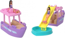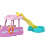 - Loď, odnímateľná šmýkačka, srdcový bazénik, mini bábika v plavkách