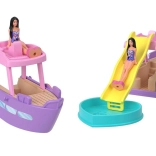 Objavte kúzlo sveta MINI BARBIE LAND s roztomilou mini loďou, ktorá sa behom chvíľky premení na zábavný vodný park. Set obsahuje loď s odnímateľnou šmýkačkou a tyrkysovým srdcovým bazénikom, plus mini bábiku. Ideálne na cestovanie, zbieranie aj kreatívne hranie. Kompaktné rozmery, premyslené detaily a funkčná šmýkačka zaistia množstvo imaginatívnej zábavy.