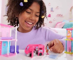 Karavan Mini Barbie Land ponúka otváracie dvere, detailnú kuchynku a premyslený interiér pre nápadité scénky na cestách.