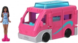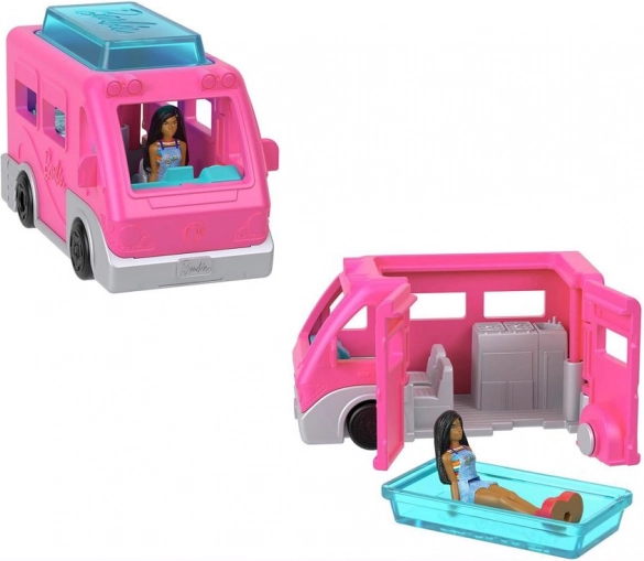 Objavte ikonický cestovateľský štýl v mini meradle. Mini karavan BARBIE DreamCamper prekvapí detailným interiérom s kuchynkou, otváracími dvierkami a šikovným úložným priestorom. Odnímateľný bazénik možno pripevniť na strechu a vďaka teplotnému efektu mení farbu – studená voda farbu zmení, teplá ju vráti späť.