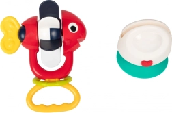 Vstavané hrkajúce guľôčky a otáčajúca sa horná časť podporujú sluchové vnímanie a rozvoj jemnej motoriky.