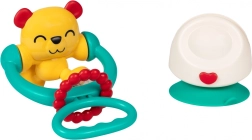 Roztomilý medvedík upúta pozornosť jasnými farbami a príjemnými zvukmi. Vďaka integrovanej hrkálke dieťa objavuje vzťah medzi pohybom a zvukom, zatiaľ čo otáčavý vrchnák podnecuje zvedavosť a koordináciu rúk a očí. Silná prísavka udrží hračku stabilne na hladkom povrchu – ideálne na jedálenskú stoličku alebo stôl.