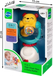 Farebné a interaktívne detské chrastítko 2 v 1 v tvare medvedíka s pevnou prísavkou a otáčavými prvkami podporuje rozvoj zraku, sluchu a jemnej motoriky. Bezpečné materiály bez BPA, vhodné na jedálenskú stoličku, stôl aj ďalšie hladké povrchy.