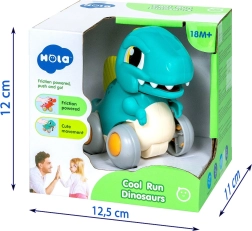 Zotrvačný frikčný pohon umožní dinosaurovi po ľahkom postrčení samostatne ísť. Skvelé pre aktívnu hru a prvé preteky na koberci aj podlahe.