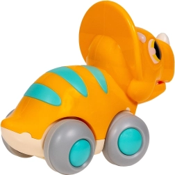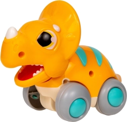 Interaktívny dinosaurus na kolieskach je navrhnutý pre malých prieskumníkov. Frikčný pohon umožňuje jednoduché uvedenie do pohybu – stačí zatlačiť a sledovať, ako sa rozbehne a pohne čeľusťou. Odolný, kvalitný plast bez BPA a zaoblené tvary zabezpečujú bezpečnú hru na rôznych povrchoch.