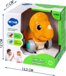 Hračka podporuje prirodzený rozvoj: precvičuje úchop, posilňuje koordináciu a motivuje k aktívnemu pohybu. Priateľský vzhľad dinosaura inšpiruje k príbehom a tvorivej hre, ktorá rozvíja fantáziu a sociálne zručnosti.