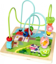 Pestrofarebné korálky a zvieratká na dráhach podporujú koordináciu ruka–oko, trpezlivosť a presnosť pohybov.