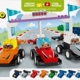 Detská vášeň pre pretekanie dosiahne nové rozmery so setom LEGO Duplo Town Pretekárske autá a jazdci F1. Sada obsahuje 70 dielikov, ktoré umožňujú vytvárať autentické pretekárske scény, vrátane svetelného štartovacieho oblúka a pódia pre víťazov.