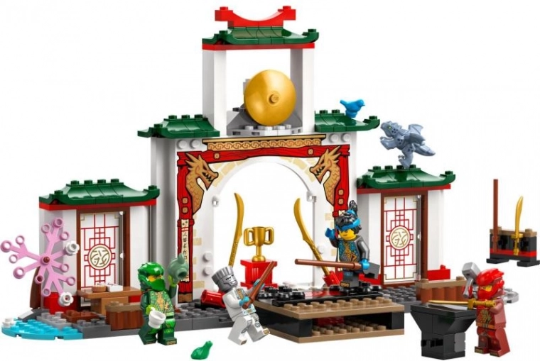 Stavebnica LEGO NINJAGO chrám spinjitzu ninja prenáša malých fanúšikov do sveta turnajov, tréningu a čajových obradov. Čajovňa, malá záhrada a cvičisko lákajú k rozprávaniu príbehov, zatiaľ čo dve otočné plošiny na turnajovej scéne roztočia napínavé súboje ninjov.