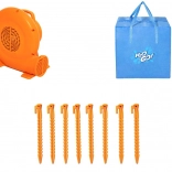 - Šmykľavka s bazénom, dúchadlo, taška na prenášanie, 8 kotviacich kolíkov, rozprašovacia hadica