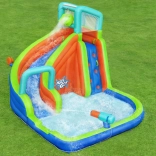 Premeňte záhradu na letný raj s nafukovacím vodným parkom Bestway H2O GO!. Deti si užijú lezenie po stene, svižnú vodnú šmykľavku, osviežujúci vedro s vodou a vodné delo do veľkého brodiaceho bazéna. Odolná konštrukcia z polyesteru potiahnutého PVC, rýchla inštalácia a výkonná dúchadlá zaistia hodiny bezpečnej zábavy pre až 5 detí.