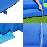 Trvácny materiál z polyesteru s PVC povrchom a premyslené kotvenie zaisťujú stabilitu. V balení nájdete všetko potrebné: dúchadlo, kolíky, hadicu na rozprašovanie aj praktickú tašku na prenášanie. Ideálne na rodinné oslavy, víkendy aj každodenné vodné vyvádzanie pod dohľadom dospelých.