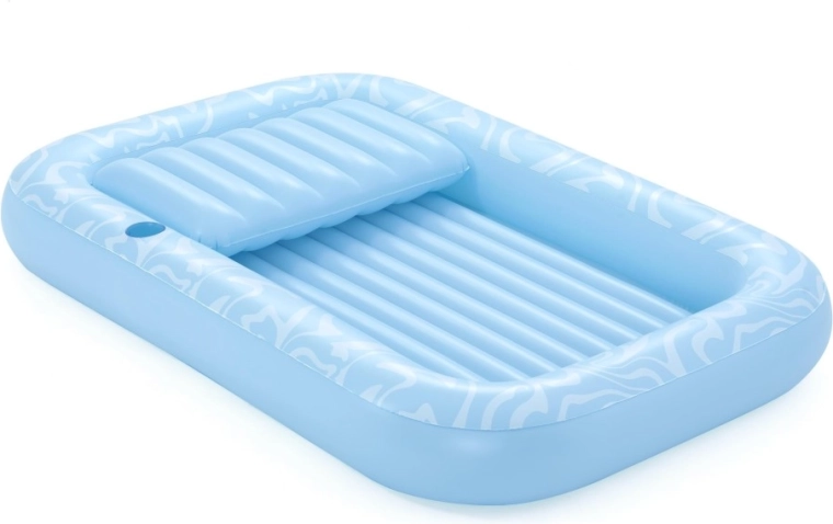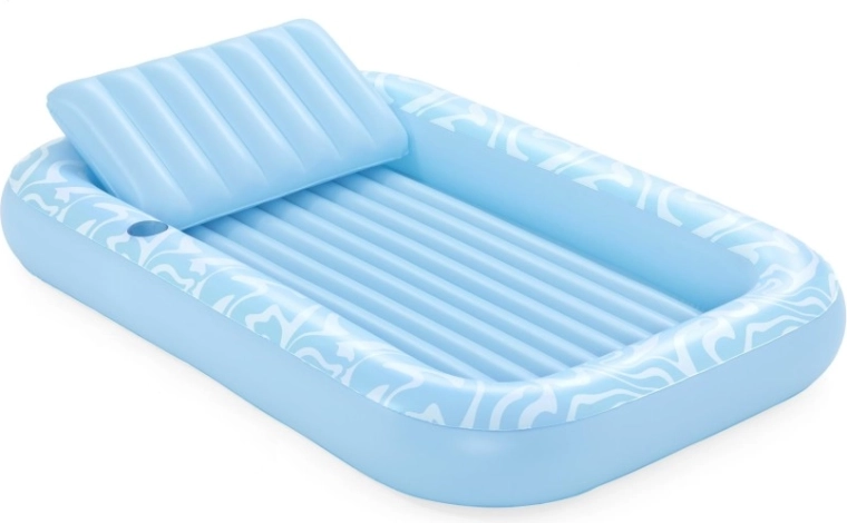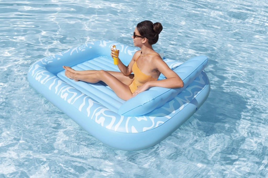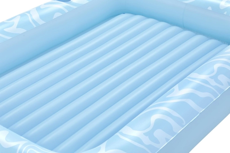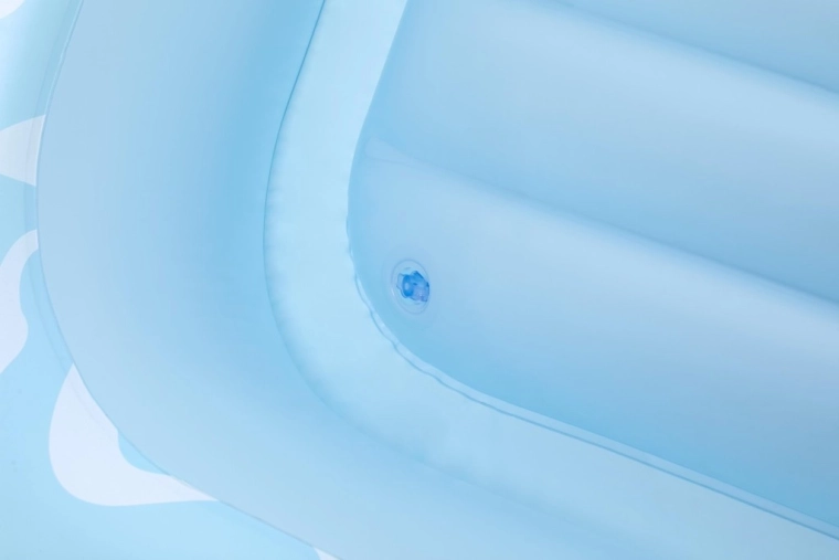 Pozdĺžne výstuhy a tri nezávislé komory zvyšujú stabilitu, nosnosť a bezpečie. Ležadlo lepšie pláva a rovnomerne podopiera celé telo.