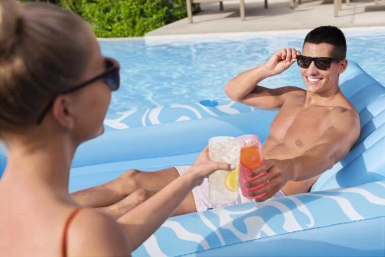 Užite si bezstarostné leto s priestranným nafukovacím ležadlom BESTWAY Sun-Kissed. Ponúka veľkú plochu na odpočinok, integrovanú opierku hlavy a držiak na nápoj pre maximálne pohodlie vo vode aj na súši. Stabilná I‑beam konštrukcia a tri nezávislé vzduchové komory zabezpečujú výbornú stabilitu a bezpečie, zatiaľ čo odolný vinyl sa ľahko čistí a dlho vydrží.