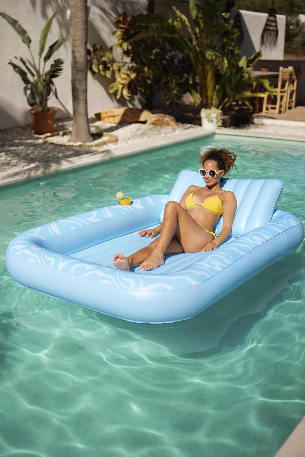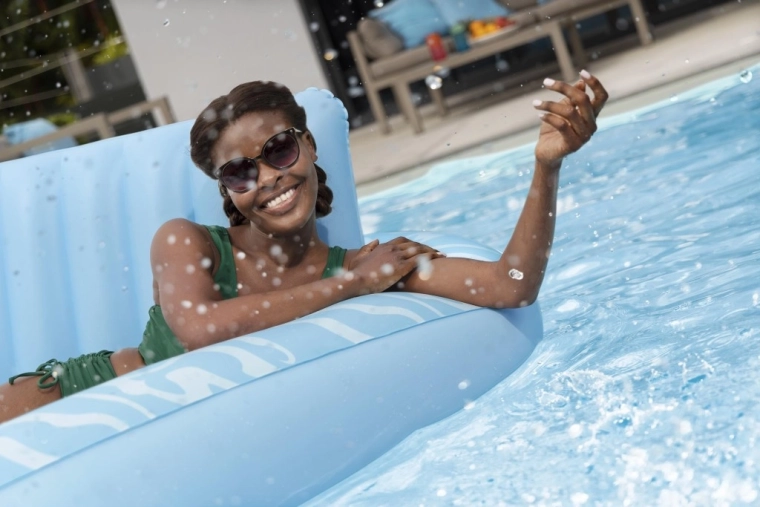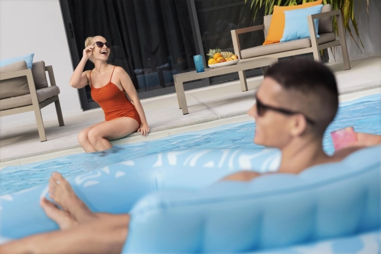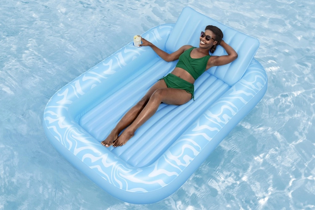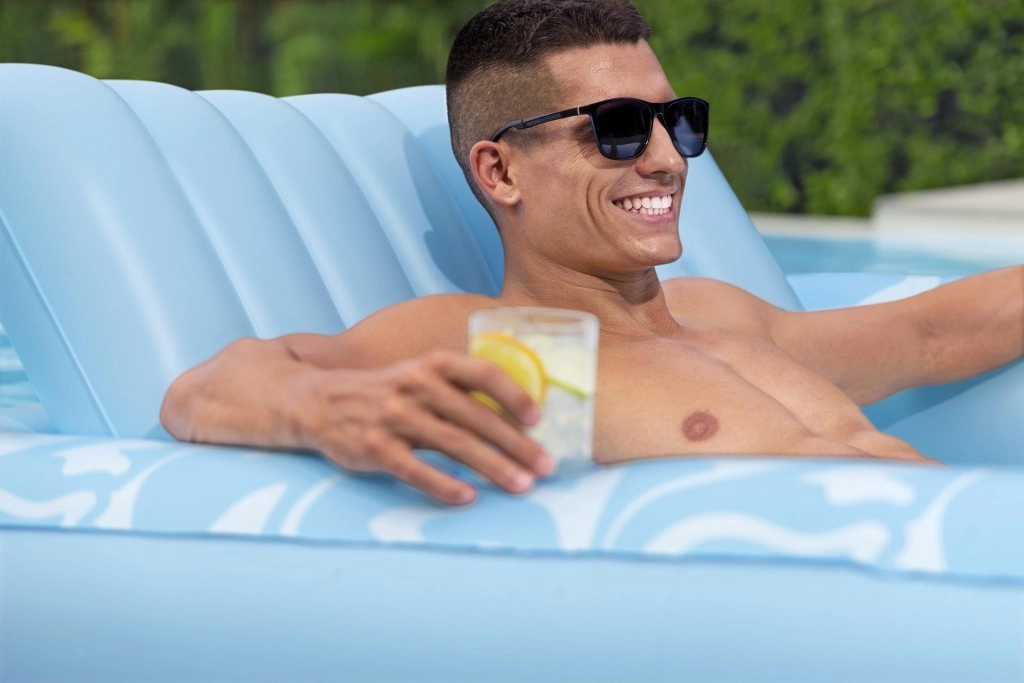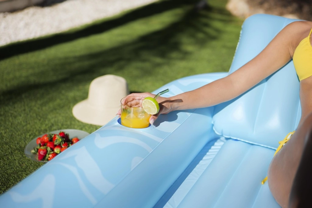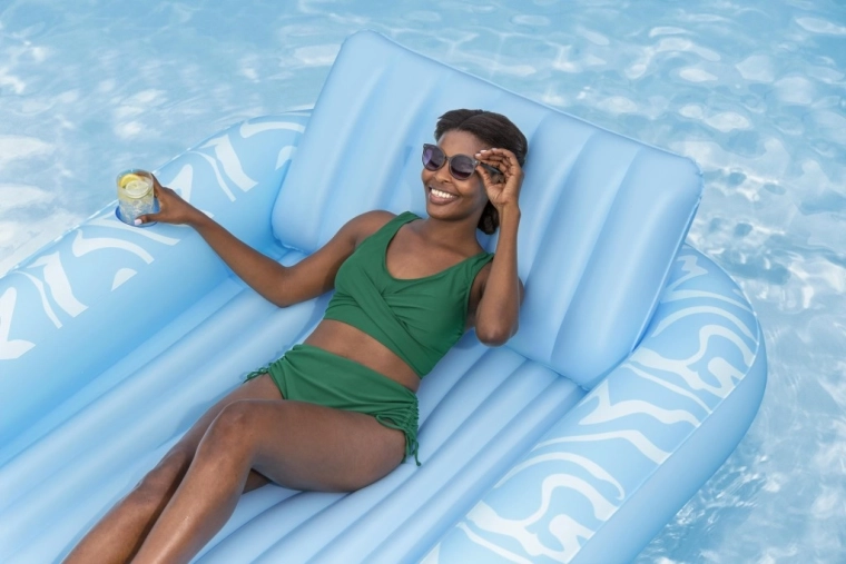 Zvýšená a mäkko vystužená opierka hlavy uvoľní krk aj ramená, takže si užijete dlhší relax bez nepohodlia – vo vode aj na súši.