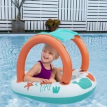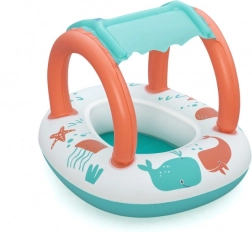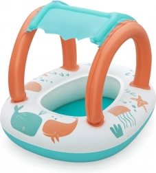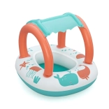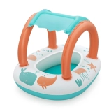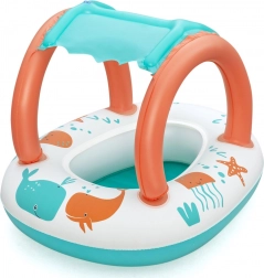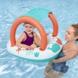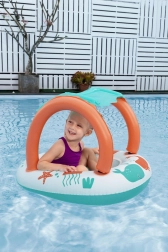 Ľahký a pohodlný čln pre najmenších kombinuje zábavnú morskú grafiku s praktickou strieškou s UV ochranou. Odnímateľný slnečný kryt sa upevňuje na suchý zips, takže ho ľahko prispôsobíte počasiu aj intenzite slnka. Vďaka uzavretému sedaciemu priestoru s otvormi na nôžky si deti užijú stabilné a bezpečné šantenie vo vode.