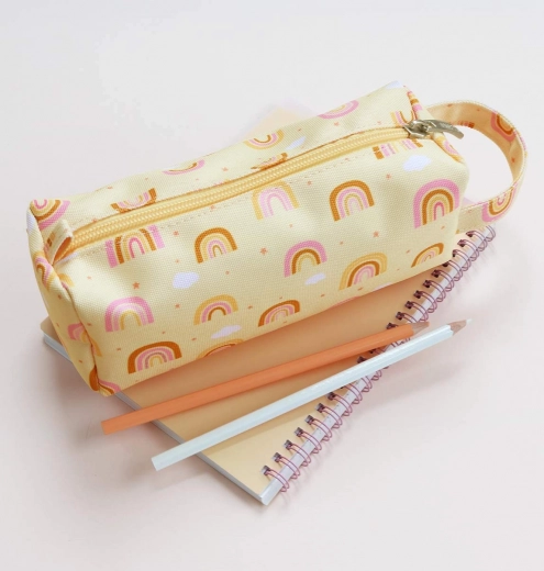 Predstavujeme štýlové a praktické puzdro na pastelky s motívom dúhy. Vyrobené z udržateľného polyesteru, ideálne pre deti na cestách alebo v škole.