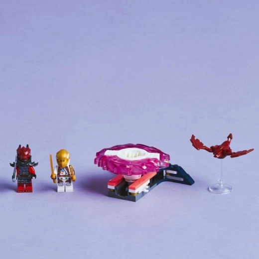 Vstúpte do sveta NINJAGO a prehrávajte si napínavé scény z 3. série seriálu Vzostup drakov. Spinner s vystreľovačom prináša rýchlu a jednoduchú akciu – stlačte, roztočte, trafte cieľ a sledujte, ako dva živly moci odlietajú. Vďaka aplikácii LEGO Builder je stavanie intuitívne a zábavné pre deti aj rodičov.